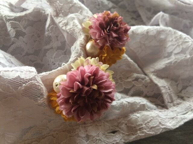 3色のお花にコットンパールを合わせたボリュームピアスになります。